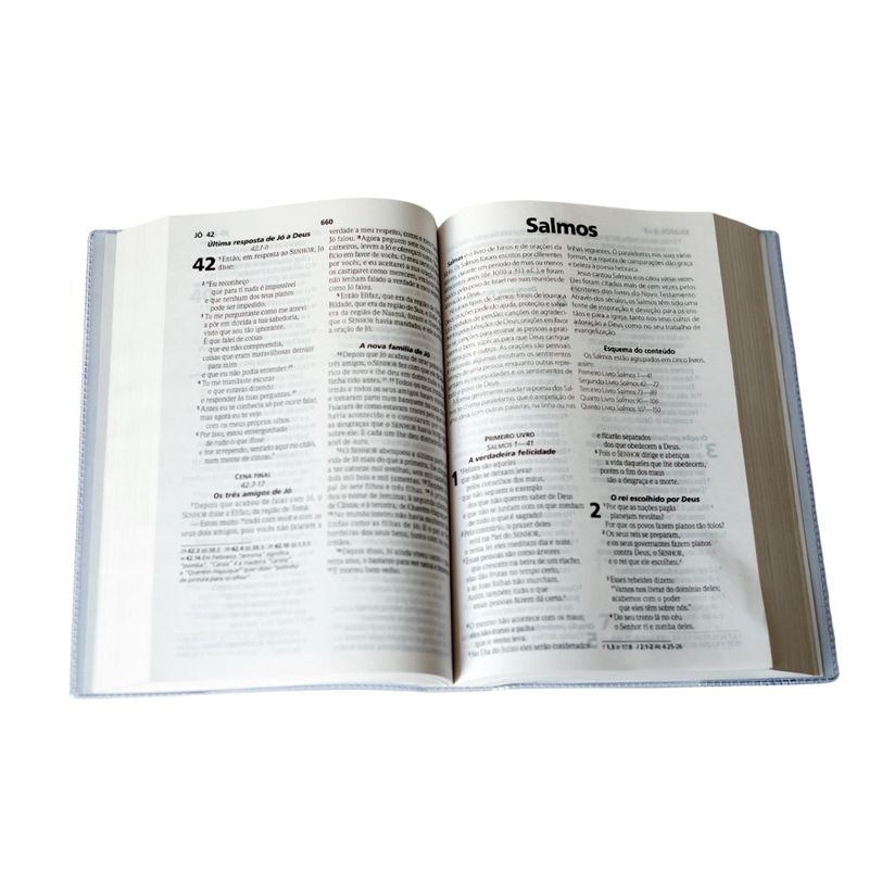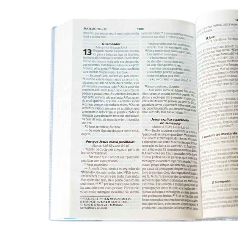 - Referências paralelas, que conectam passagens relacionadas, enriquecendo o estudo bíblico.