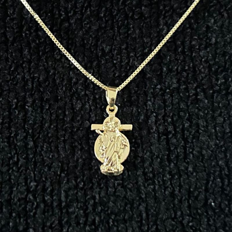 O Colar Jesus das Santas Chagas Banhado a Ouro é uma joia alia delicadeza, espiritualidade e elegância. Seu design exclusivo traz um pingente de Jesus das Santas Chagas em semijoia banhada a ouro.