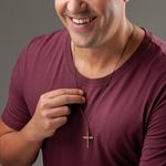 Confeccionado com acabamento rústico e elegante, o pingente em formato de cruz harmoniza perfeitamente com o cordão, resultando em uma peça versátil, ideal para o uso cotidiano ou para momentos especiais de oração. Um colar que expressa identidade cristã e fortalece a espiritualidade de quem o usa.