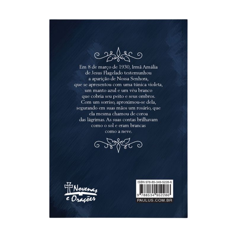 Este pequeno livro traz, entre orações e imagens devocionais, uma breve história de Nossa Senhora das Lágrimas, que teve sua origem em 8 de março de 1930, quando Nossa Senhora apareceu à Irmã Amália de Jesus Flagelado, revelando-lhe, sob este título, a coroa das lágrimas, a medalha milagrosa e o pedido de que a ela fosse dedicada essa devoção pela conversão e salvação dos pecadores.